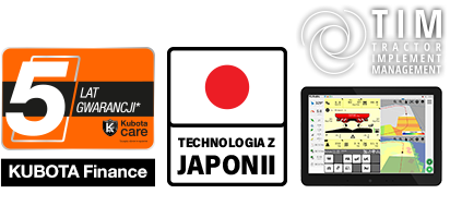 * Szczegółowe warunki finansowania zostały opisane w umowie. Umowa o finansowanie fabryczne KUBOTA Finance jest zawierana zgodnie ze wzorem stosowanym przez podmiot finansujący. Treści handlowe zamieszczone w tym ogłoszeniu nie stanowią oferty w rozumieniu art. 66 Kodeksu Cywilnego i mają jedynie charakter informacyjny o możliwych wariantach finansowania nabycia maszyn. Finansowanie fabryczne obejmuje wybrane maszyny marki Kubota: ciągniki rolnicze i kompaktowe, miniciągniki, kosiarki samojezdne, pojazdy wielozadaniowe oraz opryskiwacze specjalistyczne marki Kubota.